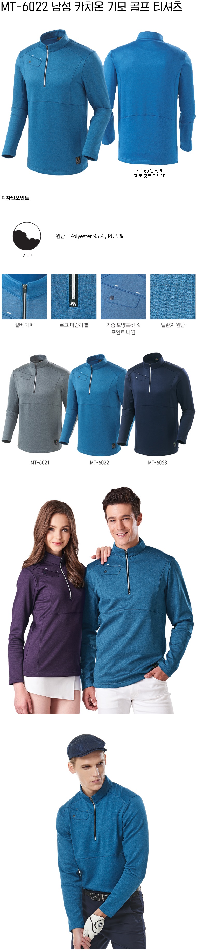 MT-6021~6023 남성 카치온 기모 골프 티셔츠(블루)